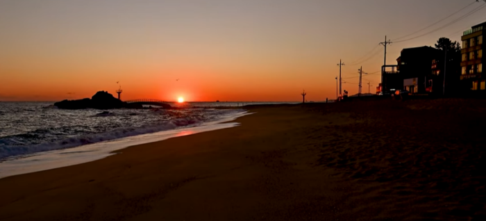 주문진 해변은 상대적으로 한적한 분위기 속에서 일출을 감상할 수 있는 장소입니다. 이곳의 매력은 동해의 잔잔한 파도 소리와 함께 태양이 떠오르는 모습을 조용히 감상할 수 있다는 점입니다.