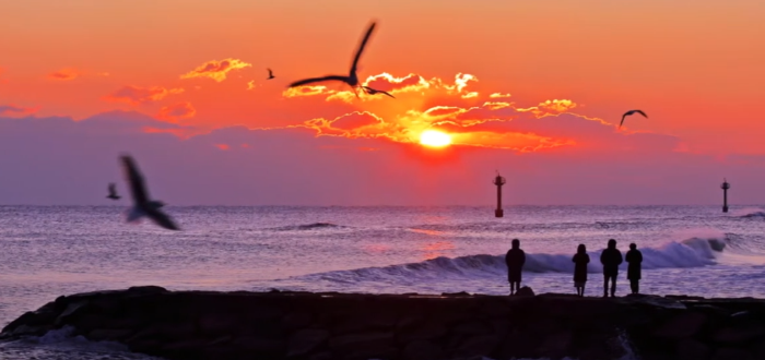 강문해변은 정동진과 경포대에 비해 비교적 인파가 덜한 일출 명소입니다. 이곳의 특징은 바다 방향으로 깊숙이 설치된 방파제로, 마치 바다 중앙에서 일출을 감상하는 듯한 느낌을 줍니다.