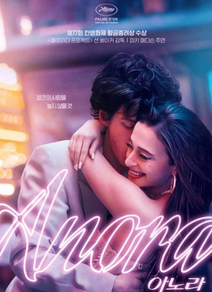 아노라는 2024년 개봉한 미국 코미디 드라마 영화로, 션 베이커 감독이 연출했습니다. 뉴욕에서 스트리퍼로 일하는 아노라가 러시아 재벌 2세 이반과 충동적으로 결혼하면서 벌어지는 이야기를 그린 작품입니다. 현실적인 스토리와 강렬한 캐릭터가 돋보이며, 칸영화제 황금종려상을 포함한 다수의 영화제에서 수상하며 큰 주목을 받았습니다.